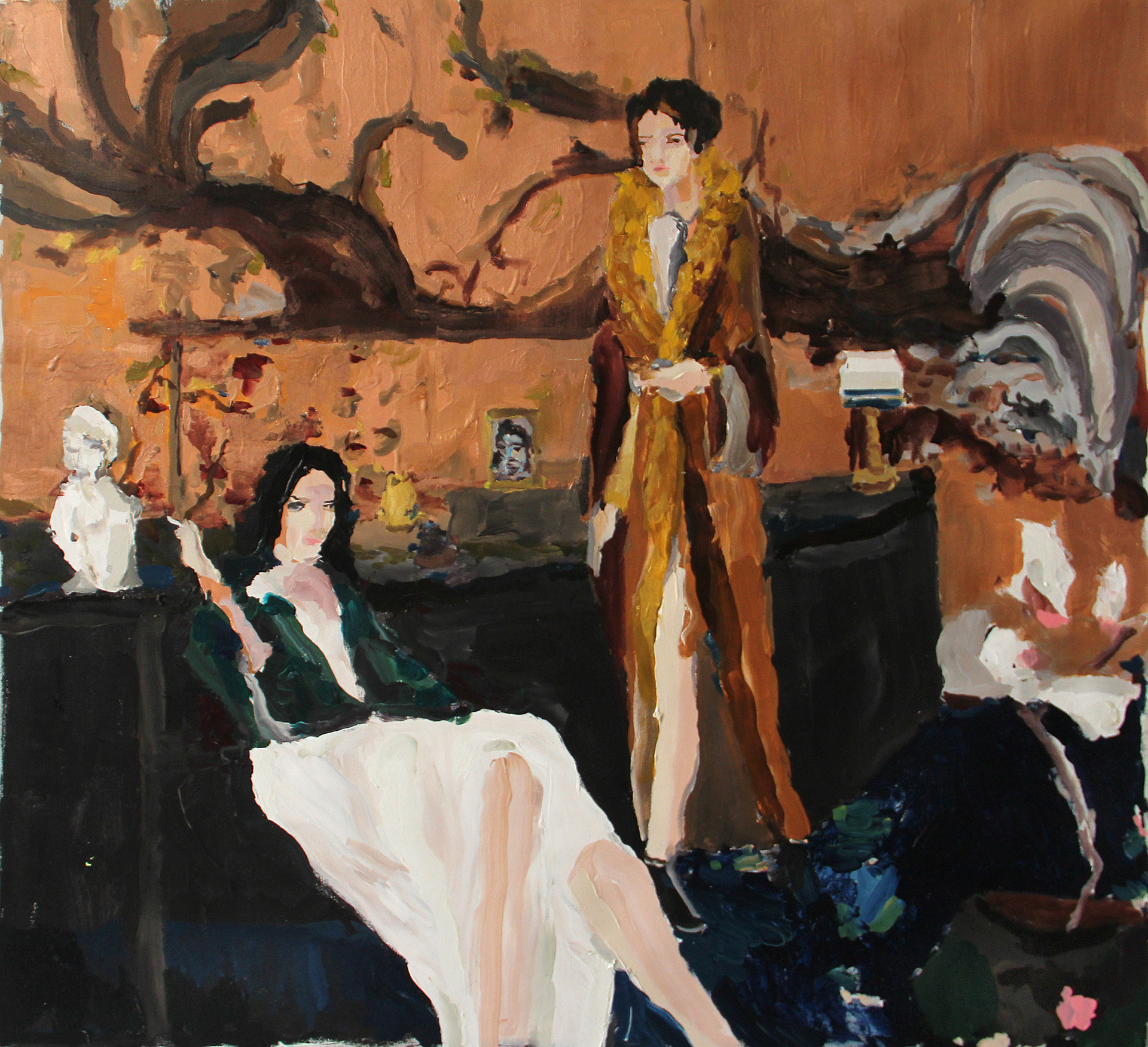 Lounging with Landscape Painting, 2014, 40"x42" oil on canvas